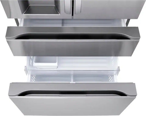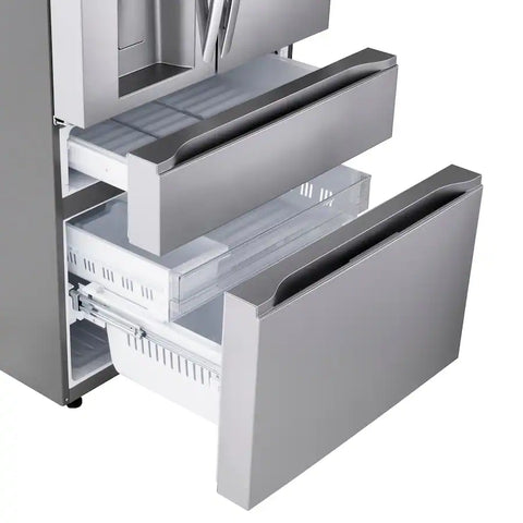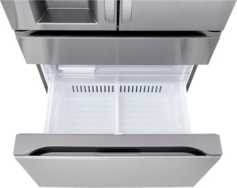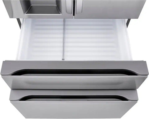 This 4-door Counter-Depth MAX refrigerator doesn’t just give you space — it brings a new level of organization, flexibility and style to your kitchen. Sleek flat-panel doors with dual handle design for easy opening add a premium feel. A slam-resistant door design allows the refrigerator doors to close softly and quietly. French doors offer easy access to fresh foods, while double drawers below means no more rummaging through stacks of frozen items. The versatile Full-Convert Drawer converts from fridge to freezer with just a touch. Five temperature settings provide optimal storage for a range of fresh or frozen items.