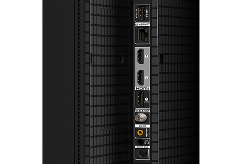 Connectivity options include multiple HDMI inputs, USB ports, Wi-Fi, and Bluetooth, allowing easy connection to soundbars, gaming consoles, streaming devices, and external media sources.