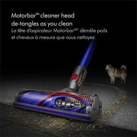 Motorbar™ cleaner head delivers strong suction on all floor types and automatically detangles wrapped hair